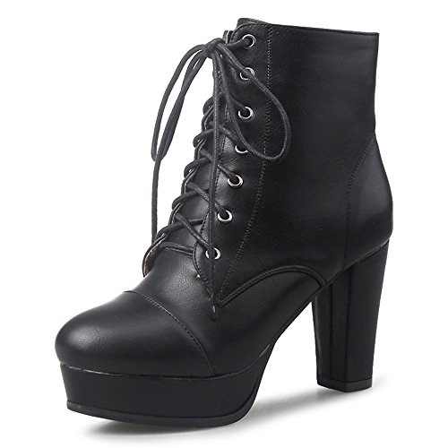 Best Seller! Fashion Heel Women's Chunky Heel Round Toe Lace Up Platform Ankle Boot (4.5, black) Review